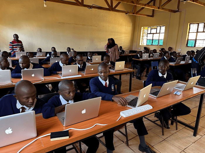 Angaza Center has partnered with AIC Katwanyaa to introduce technology studies for students. Together, a fully equipped technology center was established with devices, internet access, and online learning tools, seating up to 60 students per session.